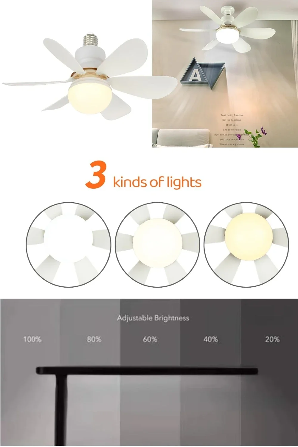 Socket Fan Light LED Ceiling Fan Dimmable Small Ceiling Fan for Garage Bathroom Bedroom Kitchen Indoor Lighting Ceiling Lights